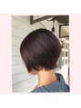 前下がりボブです。乾かすだけでふわっと丸く、可愛い束感、まとまるヘアーに。カラーは、ピンクブラウンでつやつやに。