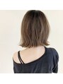パッツンボブスタイルにグレージュカラーで透明感を出しました。根元はグレイカラー(白髪染め)でもベースの状態にもよりますがハイトーンカラーも可能です。