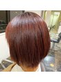 ツヤも出しつつ、レッド系のブラウンも強調したショートボブスタイルです。