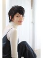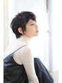 黒髪、流し前髪のマニッシュなモダンショートスタイル。シースルーの斜めバングと耳かけアレンジで前下がりショートヘアがぐっと大人っぽい印象に♪♪