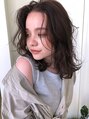 根元からのゆるいニュアンスウェーブがグランジ感のあるミディアムスタイル。重すぎないAラインシルエットにトップだけレイヤーを。ストロークカットで質感を柔らかく。