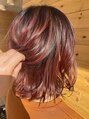インナーカラー/イヤリングカラー/レッド/ピンクブラウン/抜け感