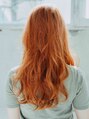 流行りのセンターパートスタイル!大人ナチュラルな印象を与えるスタイルですが、カラーリングをアプリコットオレンジカラーにすることで、個性的な印象に!オレンジ系のカラーリングは暖かく元気な印象も与えてくれます!