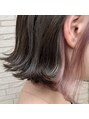 【人気の切りっぱなしボブ】カラーのベースは暗めのアッシュグレーでインナーカラーはブリーチ1回してパープル系のカラーをオン♪部分でメリハリをつけたのでお洒落度アップ♪