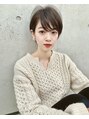 前下がりの前髪長めのショートボブ。カラーは8トーンのグレー系のAVEDAカラーです。柔らかい質感がでるようにカットしてます。ショート初心者様にオススメです。