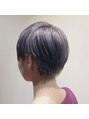 ブリーチ後、黄色味をしっかり除去したラベンダー系ハイトーン。色落ちのキレイさバツグン!白っぽく抜けて退色後もキレイなブロンドに♪耳周りもしっかり切り込んだショートはざっくりワックスを揉み込むだけでこなれ感♪