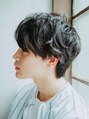 ミディアムショートのメンズスタイル、トップを長く切ったスタイルで、毛先に動きを出すために太めのロッドでパーマを巻きスタイリングを楽にできます。襟足はみじかくカットしてすっきりとした清潔感のあるスタイルです。【新小岩】
