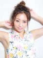 おくれ毛を出したカジュアルなお団子ヘアです。時間もかからず可愛くなりたい方にぜひオススメしたいスタイルになります。カラーはアディクシーカラーで赤みを消して落ち着いた印象を与えます♪