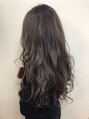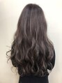 重ためのロングスタイルに、ハイライトを入れて全体にラベンダーグレージュのカラーで柔らかさを出したロングヘア。