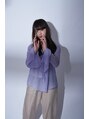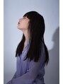 印象的な暗髪ロングストレート。前髪を目元ギリギリのパッツンにすることでモードテイストに。スタイリングは艶感とトレンド感を押さえたセミウェットに。