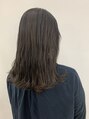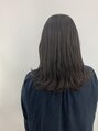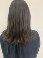 暗めだけど、透明感あるネイビーアッシュのカラーがポイント セミロングスタイルをアイロンで動かして、艶感のでるオイル仕上げに