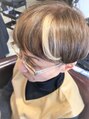 サイドは2ブロック★ネープは刈り上げ★表面にはホワイトブリーチ★★1本のハイライトで全体の雰囲気が変わりますね(*^^*)
