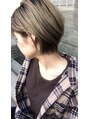 外国人風ショートボブ ハイライトベイクドグレージュ 白髪ぼかし