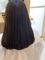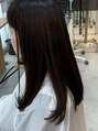 切りっぱなし感を残しつつ軽くしたスタイルです。要望がトーンダウンだったので髪への負担を減らすためにカラーはグロスを使ったバイオレット系にしました。
