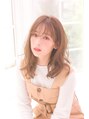 お気に入りのスタイルはブックマークしてご提示ください。似合わせ小顔カット。まとまりがいいようにベースは重め、毛先のみレイヤーを入れ重すぎないウェーブヘアスタイル。柔らかなベージュ系カラーでソフトな印象に。