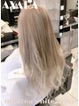 ホワイト系にもってく過程のミルクティーベージュです。上2回毛先3回のブリーチで白っぽいグラデーションを作りました。ケアブリーチでじっくりと穏やかに脱色してくのがポイントです。 海老名から可愛いいスタイル発信します!