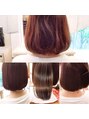 サイエンスアクアによる美髪チャージ矯正。柔らかなブローと低温でサラッとアイロン。たくさん熱を加えるのではなく、ほぼドライヤーの風で艶を出していくので髪が柔らかいまま仕上がります。髪にツヤと潤いを!繰り返しの施術により、美髪へ変貌します!