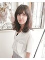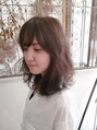 ミディアムレングスローレイヤーゆる波巻です。アウトラインをしっかり作り、レイヤーの位置は顔や頭の形に合わせて切ります。基本的には、顔がへこむところにボリュームが出るように切ります