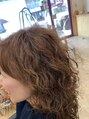 ボリュームをたっぷり持たせたウェーブを重く見せないためのくすんだベージュブラウン施術。