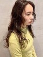 髪全体をウェーブ巻きにして、特に顔まわりを束ごとに分けて巻くと顔まわりに空気が入って柔らかく見えますスタイリングはオイルでウェットにすると適度なボリュームはおさえつつも、毛先の束感をしっかり出せて今っぽく◎