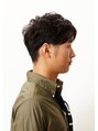 サイドをソフトツーブロックを入れてスマートなシルエットに!どこか大人っぽさを残す為にあえて長さを変えずクセを活かしたシルエット。トップにボリュームと動きを出すようなスタイルへと変身!ツムジ周りの透け感で悩み有り、パーマの方向性を計算しカバー