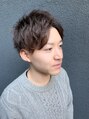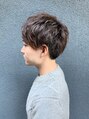 マッシュベースヘアをセンターで分けてアレンジしたショートスタイル。前髪を長めに残すことで雰囲気のあるスタイルに。