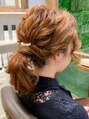 低い位置のポニーテールは大人な印象だけど、大胆に崩すことでカジュアルなセッティングにしました。普段のお洋服にも、結婚式などのフォーマルな場でも馴染みます。