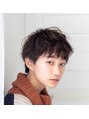 くせ毛風パーマで全体を無造作に動かしたポップなコンパクトショート。耳周りと襟足を短くしてメリハリをつけています。流した前髪でフェミニンな雰囲気もだして、可愛く、クールに♪
