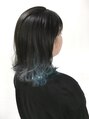 他人と差をつけるブルーカラー!シアン×インディコブルーで作る何とも言えないブルー具合はなかなかマネされない。インナーカラーですが今までのカラー履歴が作るグラデーション具合もポイントです
