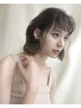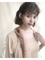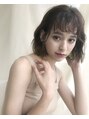 プツッとボブにオレンジベージュのカラー。仕上げにコテでまいてニュアンスを出してます。