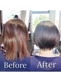 髪しく改善ストレートで、まっすぐになりすぎないようにクセを伸ばして、ショートヘアでもスタイリングが簡単なスタイルです♪
