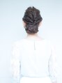 サイドを編み込み、センターに向かってねじりを加えることで、崩れ防止のしっかりとしたセットに!かっちりし過ぎず、流し前髪で清楚で上品な印象に♪