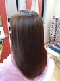 サラサラでボリューム感を感じさせないナチュラルなストレート!髪の量も多く、クセ毛も強く、髪もパサパサ髪さんに見た目を軽くし、フレンチグランカットで毛量調整をしてあります。量が多くクセ毛の方にオススメです◎