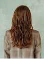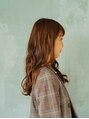 ミックス巻きしたミデイアムのモテスタイル。暗めのチェリーブラウンのカラーが秋冬の可愛らしさを出していておすすめです。前髪はパッツンにすることで大人っぽくなりすぎない印象を作っています。