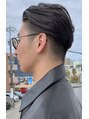 オールバックで男らしい2ブロックです。下ろすと前下がりのセンターパートになるのでその日の気分で雰囲気変わります。