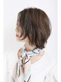 少し前髪は長めにして大人感をだして毛先を少しカールして動きを出すことで、暗い髪色に柔らかさを与えてくれます。