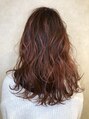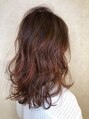 レッドとピンクをミックスしたカラーバターをオン!スタイリングは目の下まで波ウェーブで巻いたら、表面に根元から螺旋状に巻いて、ブラシで全体をほぐしてからオイルを揉み込んで完成!