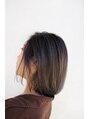 エアータッチを行い軽く見えるスタイルを作りました。ベージュ系の色なので柔らかく自然な仕上がりになっております。カットはボブスタイル中の毛量調節を行なっているので柔らかく自然な仕上がりになっています。