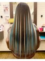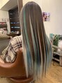 グレージュカラーにシールエクステで長さ出し&淡いカラーをプラス★水色やホワイトカラーなど地毛でやるには難しいカラーはエクステで入れてあげるのがおすすめです♪