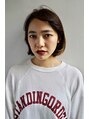 シンプルなボブに、ケアブリーチでエアータッチハイライトを。エアータッチとは、ドライヤーで短い毛を飛ばして残った髪の毛にハイライトを入れる技術。こうする事で自然にハイライトが入ります。その後はアッシュベージュで全体に色を入れました。