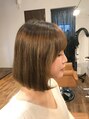 肩上にカットした前下がりのボブ。ストールを巻いたり洋服の襟が高くなるじきにもオススメ!襟元がすっきりするので長いスタイルに飽きた方是非お試し下さい!