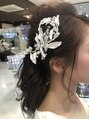 白のウエディングドレスの花嫁さんのアップスタイル