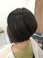サイド長目の前下がりボブです。ネープとサイドをややフラットにしながらバックスタイルを高目に設定する事で前下がりを強調させ持ちの良いスタイルとなります サイドが長すぎない為とてもセットしやすくなります。