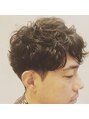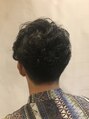 強めのくるくる感とナチュラルなゆるさがランダムにあるパーマです。サイドと襟足はメリハリをつけて刈り上げていますが、後ろの刈り上げからトップにかけては丸みを残しています。