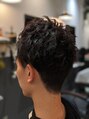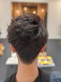 前髪のみ縮毛矯正。サイドは、ツーブロック、バックは、刈り上げからつなげる感じ。カラーは、控えめアッシュ。スタイリングは、クセを生かして立体感。