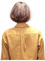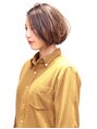 前髪を残し、おでこを大胆に見せて、おでこをチャームポイントに。カラーはツヤツヤアッシュで透明感アップ。