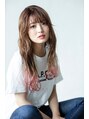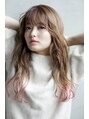 可愛らしさを引き立てるロングヘア。ランダムに巻いてくずしたカールがルーズな可愛さをだしてくれる。斜めにカットしたバングで優しい印象に。全体のベースカラーは、ピンクベージュ。毛先カラーは、ピンクを入れ個性を。