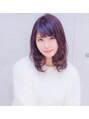 やさしいピンクカラーにアイロンで巻いたように見えるカールでパーマをかけました。女性らしいやわらかいミディアムスタイル。