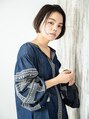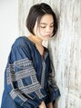前髪のないふわっと感のあるひし形シルエットボブ。黒髪との相性がいい。あごラインにそうようにカットしているので顔を小さくみせます◎