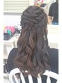 トップはねじりで複雑かつボリュームと立体感を。サイドは大きめの編み込みでかわいらしく(^^♪